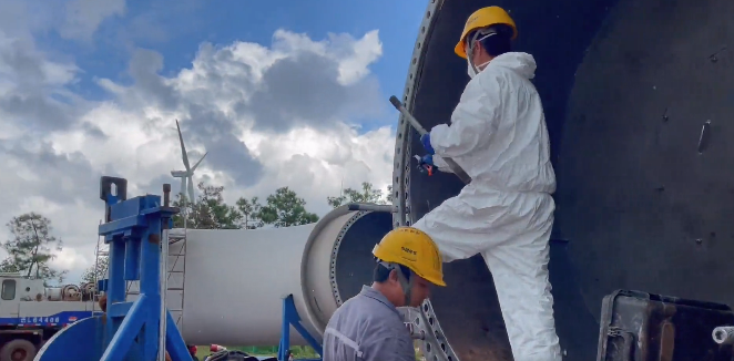 時代新材是國內(nèi)風(fēng)電葉片主力供方之一,位于風(fēng)電葉片第一方陣。在夏季用電高峰期到來之際,風(fēng)電產(chǎn)品事業(yè)部組成專門班組,驅(qū)車前往湖南山區(qū)現(xiàn)場安裝調(diào)試風(fēng)電設(shè)備,現(xiàn)場工程師們加緊趕工,執(zhí)行兩班倒作業(yè)任務(wù)。