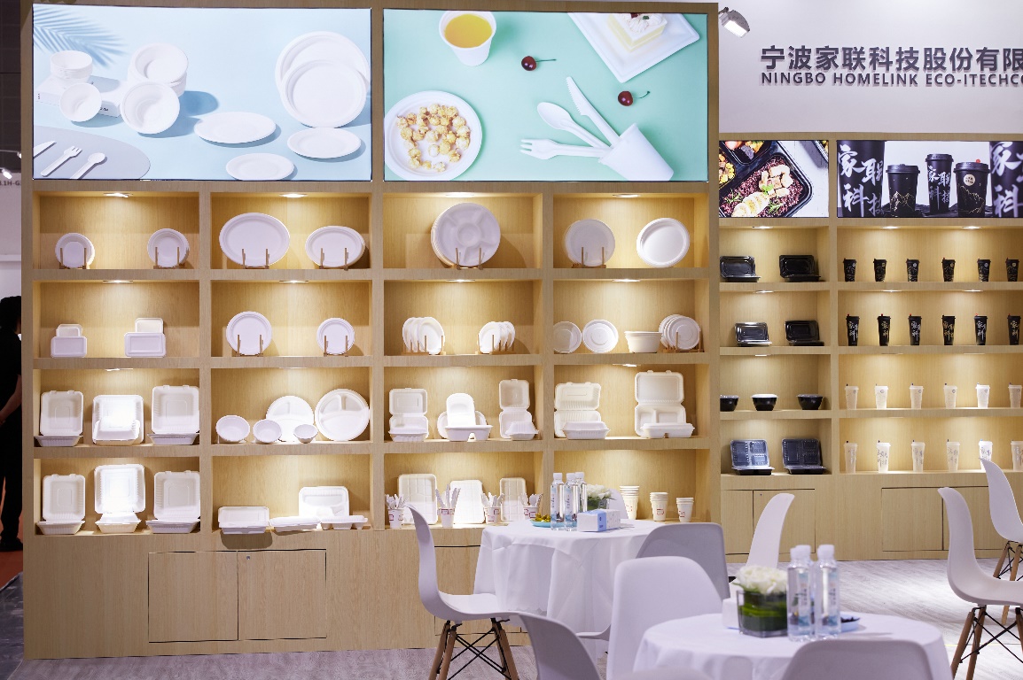 本次展會(huì),家聯(lián)科技不僅為餐飲品牌量身定制了一系列生物全降解包裝產(chǎn)品:生物降解餐飲打包袋、PLA耐熱吸管、生物降解餐具等,還攜帶了適合餐飲行業(yè)的植物纖維產(chǎn)品,其主要有餐飲打包餐盒、拌面/沙拉碗、烘焙托盤等百余款SKU,分區(qū)展示。作為全球領(lǐng)先的環(huán)保餐具企業(yè),家聯(lián)科技推出的低碳產(chǎn)品涵蓋了從包裝材料到餐具的全方位解決方案。從包裝的材料、工藝、結(jié)構(gòu)、設(shè)計(jì)、生產(chǎn)管理等角度幫助品牌實(shí)現(xiàn)包裝的可持續(xù)發(fā)展。目前家聯(lián)已開發(fā)出多種生物降解材料降本方案、植物纖維包裝解決方案、茶飲制品輕量化解決方案等,已逐步與知名餐飲品牌達(dá)成低碳共識(shí),綠色生產(chǎn)方案。