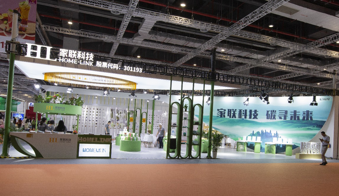 本屆博覽會(huì)為期4天,占地40萬(wàn)㎡、約25萬(wàn)參展者,來(lái)自中外的3000+展商,共帶來(lái)上萬(wàn)款新品,涵蓋了食品餐飲包裝、桌面用品、連鎖加盟等12個(gè)餐飲板塊類別,為參展者帶來(lái)了一場(chǎng)餐飲全鏈路盛宴。家聯(lián)科技作為餐飲包裝的上市公司,一直專注于食品餐飲包裝14年。本次展會(huì),家聯(lián)科技盛裝出席,在8.1飲品綜合館G72展位,展示了家聯(lián)近年來(lái)在餐飲包裝業(yè)的可持續(xù)成果。家聯(lián)科技展位設(shè)計(jì)新穎亮眼,整體風(fēng)格以“家聯(lián)科技,碳尋未來(lái)”為主題,圍繞著餐飲品牌關(guān)心的可持續(xù)包裝,在現(xiàn)場(chǎng)分區(qū)展示了各類餐飲包裝的可持續(xù)解決方案,很好地詮釋了家聯(lián)科技的企業(yè)使命:開發(fā)和制造更環(huán)保、更安全、高性價(jià)比的新材料及家居產(chǎn)品,降低碳排放與碳足跡。