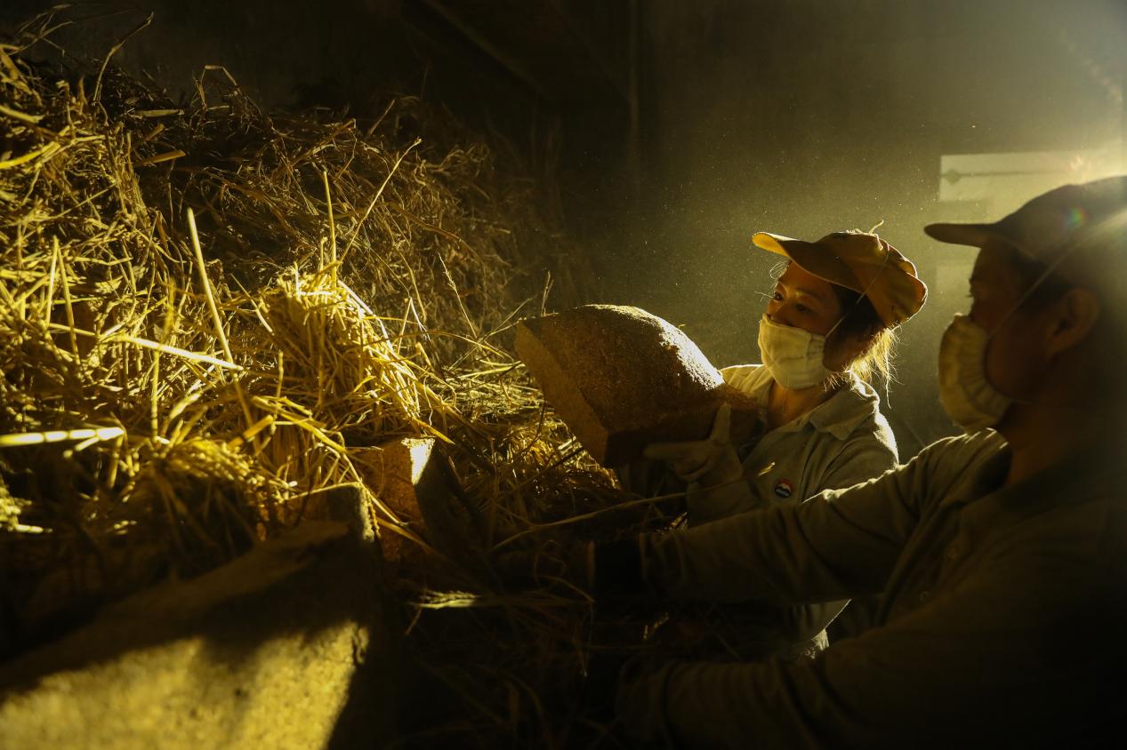 任金素則在制曲領域深耕超36年,如今已是首席制曲釀造師。她在長期實踐中練就了一套實用的判斷方法:看顏色便能掌握拌料比例,憑手感就能精準控制曲醅厚度,摸一摸曲塊就能大致判斷溫度,誤差不超過1℃。這些看似尋常的技能,背后是日復一日的積累與打磨。
