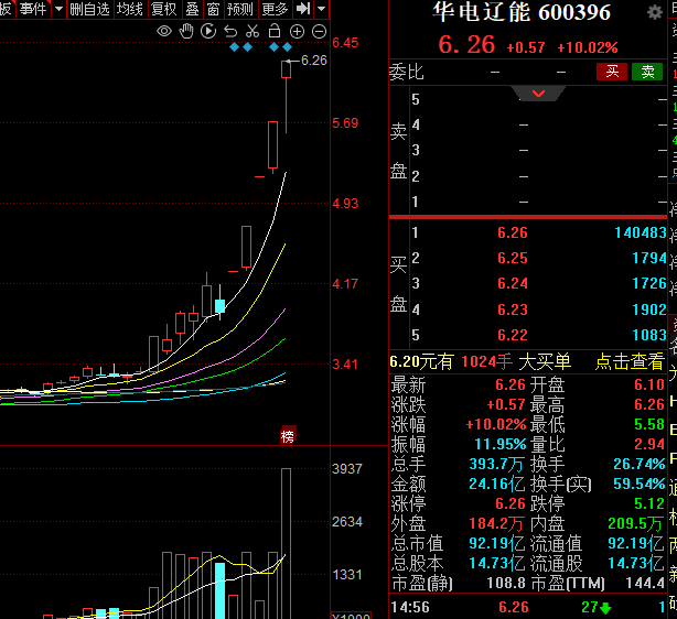 公開交易數(shù)據(jù)顯示,華電遼能近期持續(xù)快速上漲。自3月16日以來,截至3月20日收盤,華電遼能連續(xù)漲停,連續(xù)五個(gè)交易日內(nèi)日收盤價(jià)格漲幅偏離值累計(jì)達(dá)到64.72%。其中,3月20日,華電遼能共計(jì)成交393.7萬手,成交額24.16億元,換手率26.74%,均創(chuàng)下近期新高。