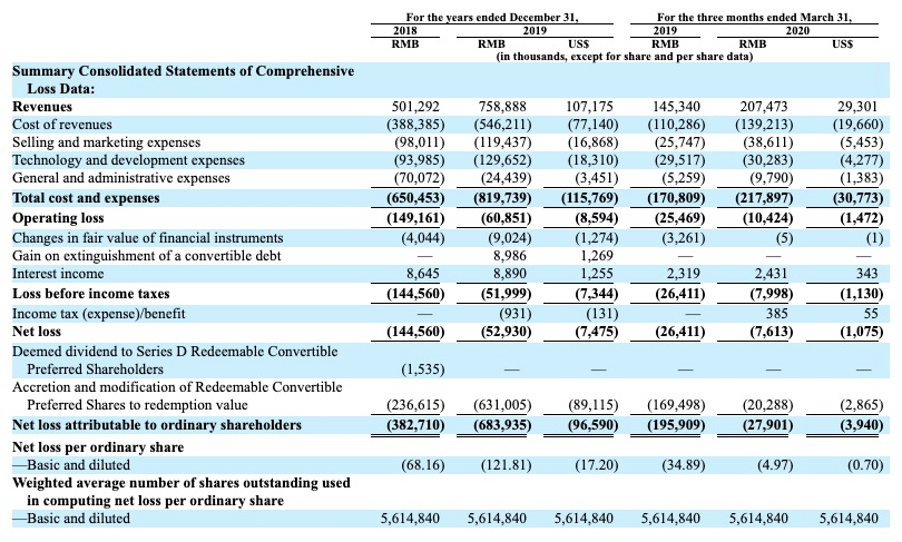 營收方面,公司2019年?duì)I業(yè)收入達(dá)7.59億元,相較2018年5.01億元增長51.4%。2020年第一季度收入達(dá)2.07億元,2019年同期為1.45億元。