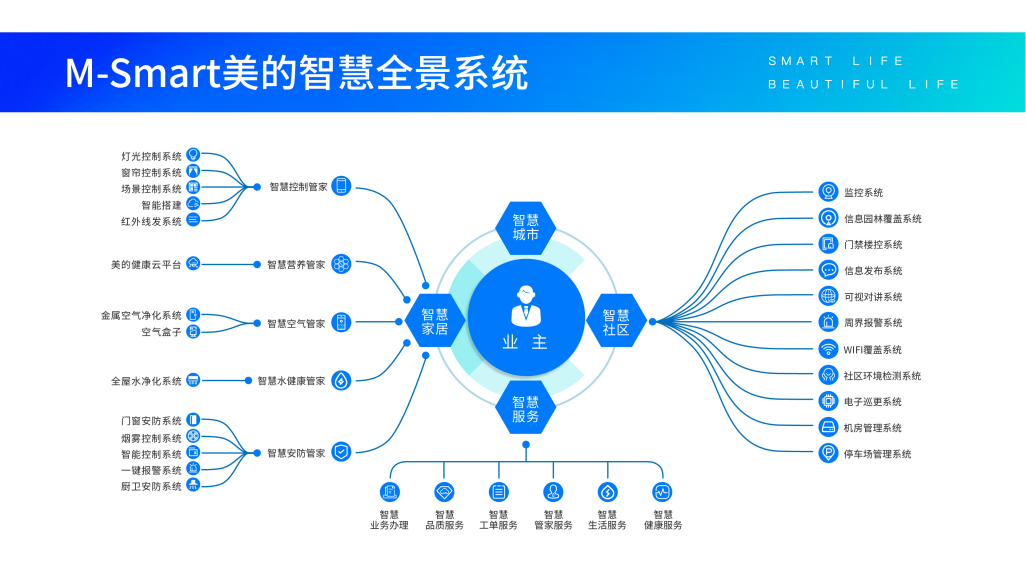 智慧家居、智慧交通、智慧醫(yī)療、智慧商業(yè)、智慧辦公等,共同組成了智慧城市,也共同營(yíng)造了一種新的生活方式—-智慧生活。隨著在智慧家居、醫(yī)療、園區(qū)、商業(yè)等領(lǐng)域的不斷實(shí)踐積累與運(yùn)用,美的置業(yè)智慧全產(chǎn)業(yè)鏈服務(wù)能力將得以不斷夯實(shí),參與萬(wàn)億級(jí)智慧城市建設(shè)的未來(lái)可期。