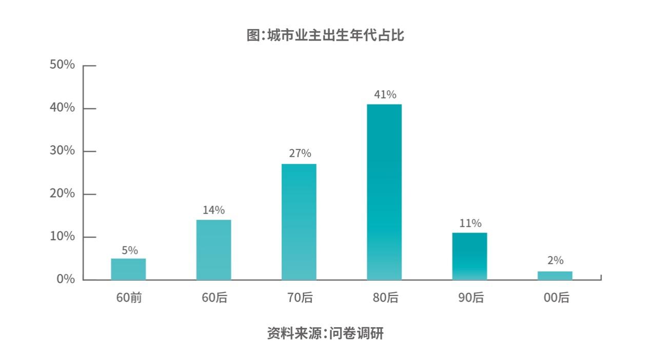 值得注意的是,《藍皮書》顯示,近三年城市業(yè)主年輕化趨勢明顯。當前一線、新一線城市業(yè)主群體中,80后業(yè)主占比超過40%。