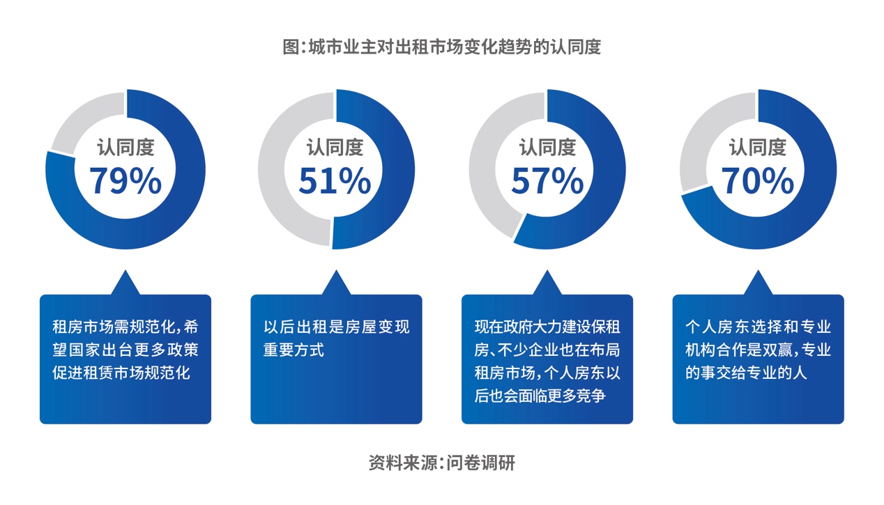 當業(yè)主群體的核心構(gòu)成逐漸過渡為年輕化高學歷人群,他們對于高效、省心的需求更甚,租房市場走向“規(guī)范化、機構(gòu)化”的共識進一步凸顯。