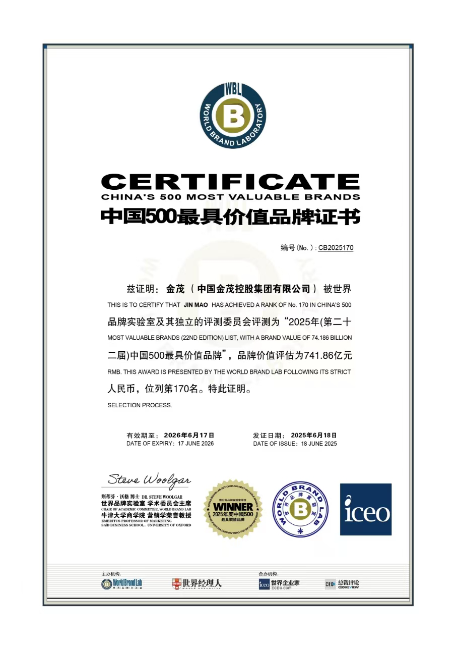 6月18日,世界品牌實(shí)驗(yàn)室發(fā)布2025年“中國500最具價(jià)值品牌”榜單。“金茂”以741.86億元的品牌價(jià)值再次入榜,位列第170位,品牌價(jià)值較去年提升近80億元,排名上升一位。據(jù)悉,“金茂”已連續(xù)21年入選“中國500最具價(jià)值品牌”,展現(xiàn)了穩(wěn)定的品牌號(hào)召力及發(fā)展韌性。