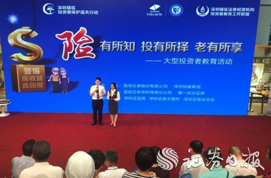 國信證券經(jīng)紀(jì)事業(yè)部副總裁徐敬耀表示,作為植根于深圳特區(qū)的全國性大型綜合類證券公司,國信證券一直積極參與公益事業(yè),包括精準(zhǔn)扶貧、“守護(hù)資本市場(chǎng)藍(lán)天”投資者教育公益行動(dòng)等,在為投資者提供專業(yè)的全方位金融服務(wù)的同時(shí),也積極承擔(dān)投資者教育和權(quán)益保護(hù)的社會(huì)責(zé)任。希望通過此次活動(dòng),使廣大投資者在投資時(shí)“擦亮雙眼”,減少不必要的損失,也希望投資者能夠選擇正規(guī)合法的金融機(jī)構(gòu),實(shí)現(xiàn)自身對(duì)投資的需求。在市場(chǎng)環(huán)境復(fù)雜,金融產(chǎn)品和投資平臺(tái)日益繁多的情況下,投資者教育與保護(hù)公益事業(yè)是正規(guī)證券經(jīng)營機(jī)構(gòu)義不容辭的責(zé)任。
