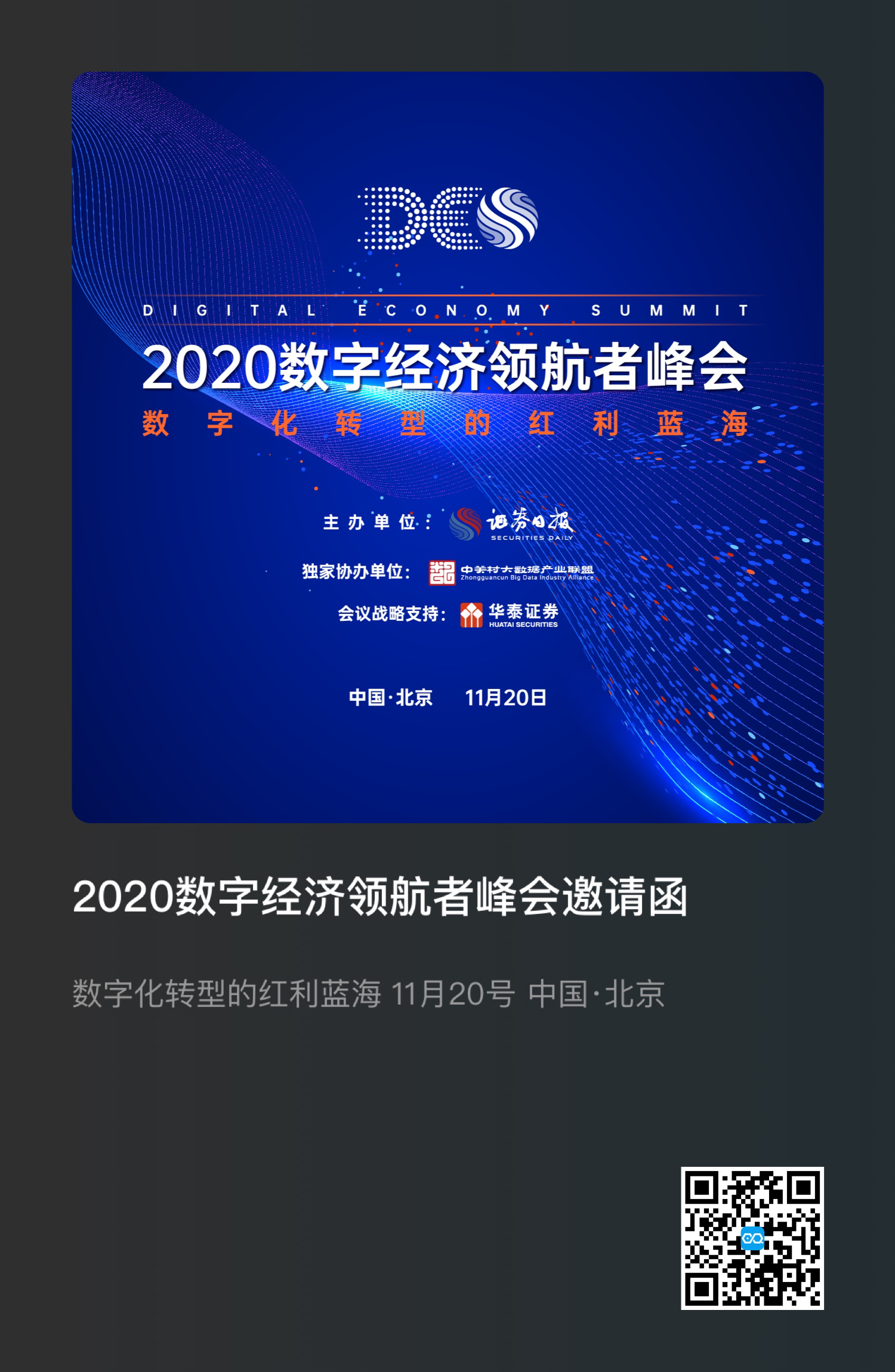 如是背景下,《證券日?qǐng)?bào)》將于2020年11月20日在京舉辦“2020數(shù)字經(jīng)濟(jì)領(lǐng)航者峰會(huì)——數(shù)字化轉(zhuǎn)型的紅利藍(lán)海”。屆時(shí),來(lái)自監(jiān)管系統(tǒng)、上市公司、擬上市公司、金融機(jī)構(gòu)、中介機(jī)構(gòu)、經(jīng)濟(jì)學(xué)界的數(shù)百名代表將齊聚一堂,共議數(shù)字經(jīng)濟(jì)的發(fā)展方向。