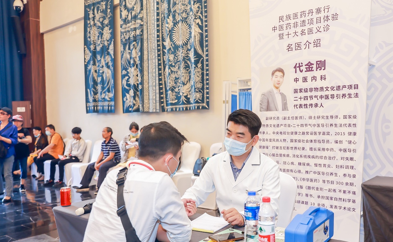 在“民族醫(yī)藥”丹寨行活動(dòng)中,中國(guó)非物質(zhì)文化遺產(chǎn)保護(hù)協(xié)會(huì)中醫(yī)藥協(xié)調(diào)委員會(huì)還在丹寨萬達(dá)小鎮(zhèn)開展了十大名醫(yī)義診活動(dòng),邀請(qǐng)全國(guó)各地的名醫(yī)代表,為丹寨萬達(dá)小鎮(zhèn)的游客免費(fèi)義診,讓游客參與中醫(yī)藥非遺項(xiàng)目體驗(yàn)。參加義診的名醫(yī)中,有多位國(guó)家級(jí)非物質(zhì)文化遺產(chǎn)代表性項(xiàng)目的代表性傳承人,還有中醫(yī)藥界多個(gè)領(lǐng)域的知名專家。他們的義診受到了社會(huì)廣泛關(guān)注,義診的預(yù)約系統(tǒng)在5月13日中午開放不到半天,專家們的義診預(yù)約號(hào)就被一搶而空。