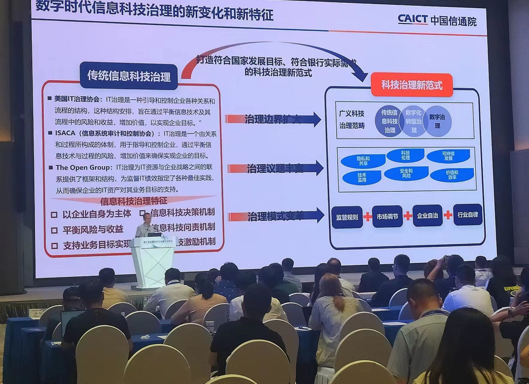 魏凱介紹,現(xiàn)代化科技治理的新變化主要體現(xiàn)在三方面:一是治理邊界的擴大,從傳統(tǒng)的信息科技治理逐漸演變到了對數(shù)字化轉(zhuǎn)型的治理;二是治理議題的豐富,包括數(shù)據(jù)隱私和共享、科技倫理、可持續(xù)發(fā)展、技術(shù)安全風(fēng)險、價值效率等等;三是治理模式的變革,數(shù)字時代的科技治理需要多元共治,包括監(jiān)管規(guī)則設(shè)定、市場行為調(diào)節(jié)、企業(yè)自治以及行業(yè)自律。