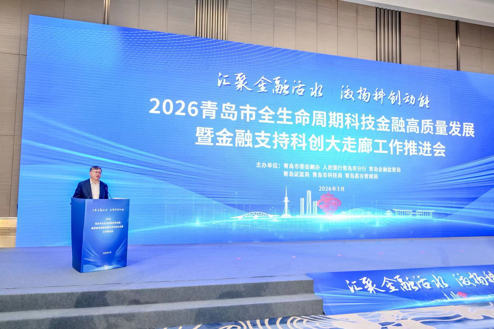 本報(bào)訊 (記者劉釗)3月17日,2026青島市全生命周期科技金融高質(zhì)量發(fā)展暨金融支持科創(chuàng)大走廊工作推進(jìn)會(huì)在青成功舉辦。本次大會(huì)以“匯聚金融活水、激揚(yáng)科創(chuàng)動(dòng)能”為主題,由青島市委金融辦、人民銀行青島市分行、青島金融監(jiān)管局、青島證監(jiān)局、青島市科技局、青島藍(lán)谷管理局聯(lián)合主辦。青島市委副書(shū)記、市長(zhǎng)任剛出席會(huì)議并啟動(dòng)青島市科技金融創(chuàng)新服務(wù)基地,青島市委常委、副市長(zhǎng)耿濤致辭,相關(guān)市領(lǐng)導(dǎo)、相關(guān)部門,科創(chuàng)大走廊相關(guān)區(qū)(市)、功能區(qū),以及全市40余家科創(chuàng)企業(yè),70余家銀行、保險(xiǎn)、證券、創(chuàng)投風(fēng)投機(jī)構(gòu)主要負(fù)責(zé)同志參加活動(dòng)并現(xiàn)場(chǎng)對(duì)接。