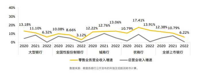 零售業(yè)務(wù)營業(yè)收入增速情況(圖片來源:《中國上市銀行2022年回顧及未來展望》)