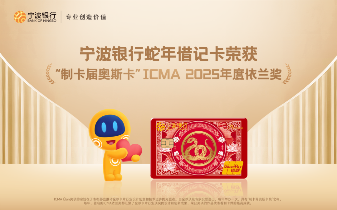 2025年5月份,國際卡制造商協(xié)會(ICMA)依蘭獎(éLAN)評選落下帷幕,寧波銀行蛇年生肖白金借記卡榮獲最佳安全支付卡評委會大獎。這不僅是對寧波銀行在金融產(chǎn)品設(shè)計領(lǐng)域卓越創(chuàng)新的高度認(rèn)可,更是一次將中國傳統(tǒng)文化與現(xiàn)代金融工藝完美融合的驚艷亮相。
