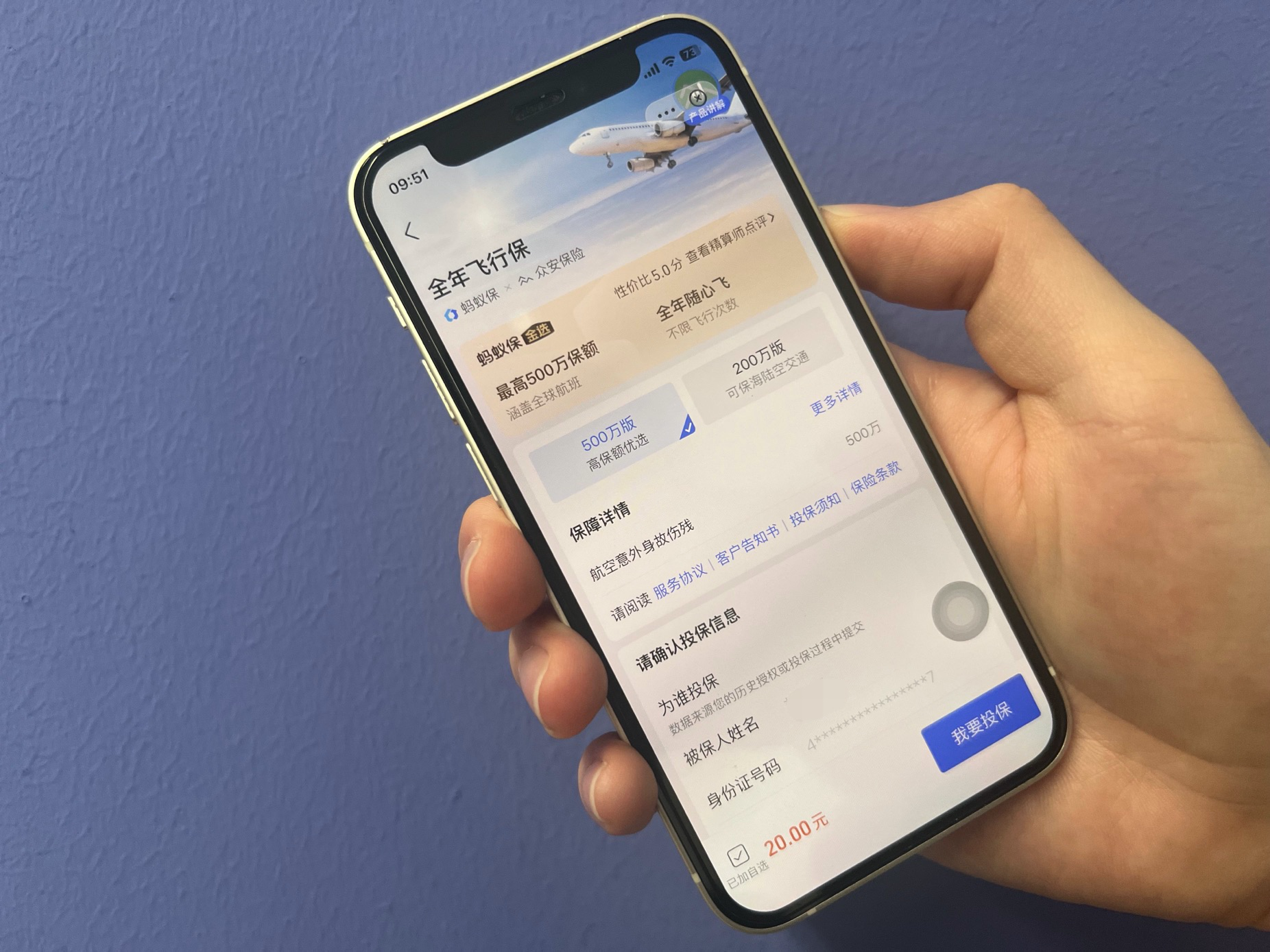 據(jù)悉,“全年飛行保”可保障乘坐公共交通工具導致的意外傷害,保額最高可達500萬元,20元/年的價格也遠低于市場同類旅行險品種。