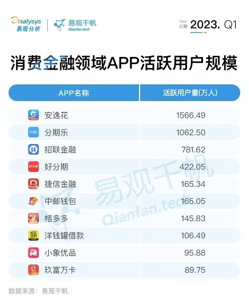 2023年一季度消費(fèi)金融領(lǐng)域APP活躍用戶規(guī)模TOP10榜單 企業(yè)/供圖