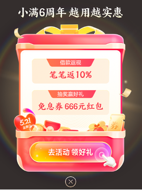 在“借款返10%”活動(dòng)中,首次參加活動(dòng)的用戶在借款后的第二天起,每天都可以收到由度小滿返還的現(xiàn)金紅包。報(bào)名方式有兩種:在”周年好禮”界面或”借款返10%”界面點(diǎn)擊“去借款賺返現(xiàn)”。開(kāi)啟活動(dòng)后,根據(jù)每日借款的剩余本金按10%比例返還紅包?;顒?dòng)期間每天16:00展示可領(lǐng)取的紅包,用戶可以在度小滿App/有錢花App”我-卡券包“內(nèi)每日領(lǐng)取或積攢領(lǐng)取。