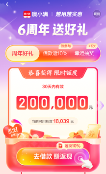 如果你近期對(duì)資金周轉(zhuǎn)有一定的需求,建議您盡早體驗(yàn)“周年好禮”這項(xiàng)活動(dòng),獲取臨時(shí)額度或臨時(shí)價(jià)格或優(yōu)惠券。參與活動(dòng)的用戶平均可提升5.6萬(wàn)元的借款額度,最高有機(jī)會(huì)獲得20萬(wàn)元提額,并有機(jī)會(huì)獲得年化利率低至4.9%的低價(jià)資金。