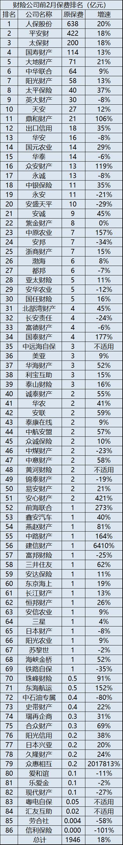 保費(fèi)排名前十財(cái)險(xiǎn)公司(億元)