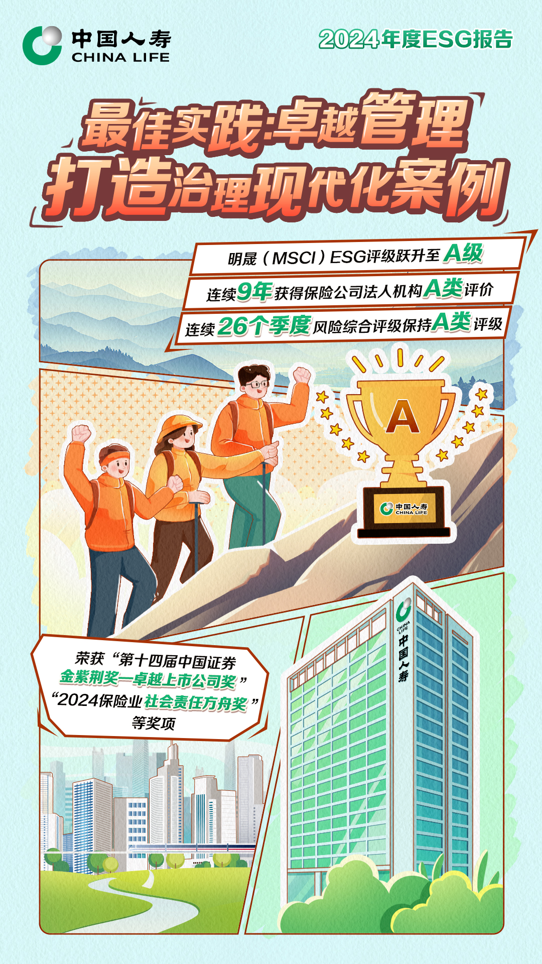 過(guò)去的一年,是中國(guó)人壽壽險(xiǎn)公司深化改革、高質(zhì)量發(fā)展的奮進(jìn)之年。該公司堅(jiān)決貫徹落實(shí)相關(guān)決策部署,充分發(fā)揮保險(xiǎn)業(yè)經(jīng)濟(jì)減震器和社會(huì)穩(wěn)定器功能,著力做好“五篇大文章”,加快推進(jìn)高質(zhì)量發(fā)展,全力提升環(huán)境、社會(huì)及治理表現(xiàn),更為社會(huì)責(zé)任履行輸出創(chuàng)新解決方案。陸續(xù)榮獲“第十四屆中國(guó)證券金紫荊獎(jiǎng)——卓越上市公司獎(jiǎng)”“2024保險(xiǎn)業(yè)社會(huì)責(zé)任方舟獎(jiǎng)”等獎(jiǎng)項(xiàng),這些成績(jī)見(jiàn)證了其與國(guó)際接軌兼具中國(guó)特色的“國(guó)壽ESG成長(zhǎng)之路”。