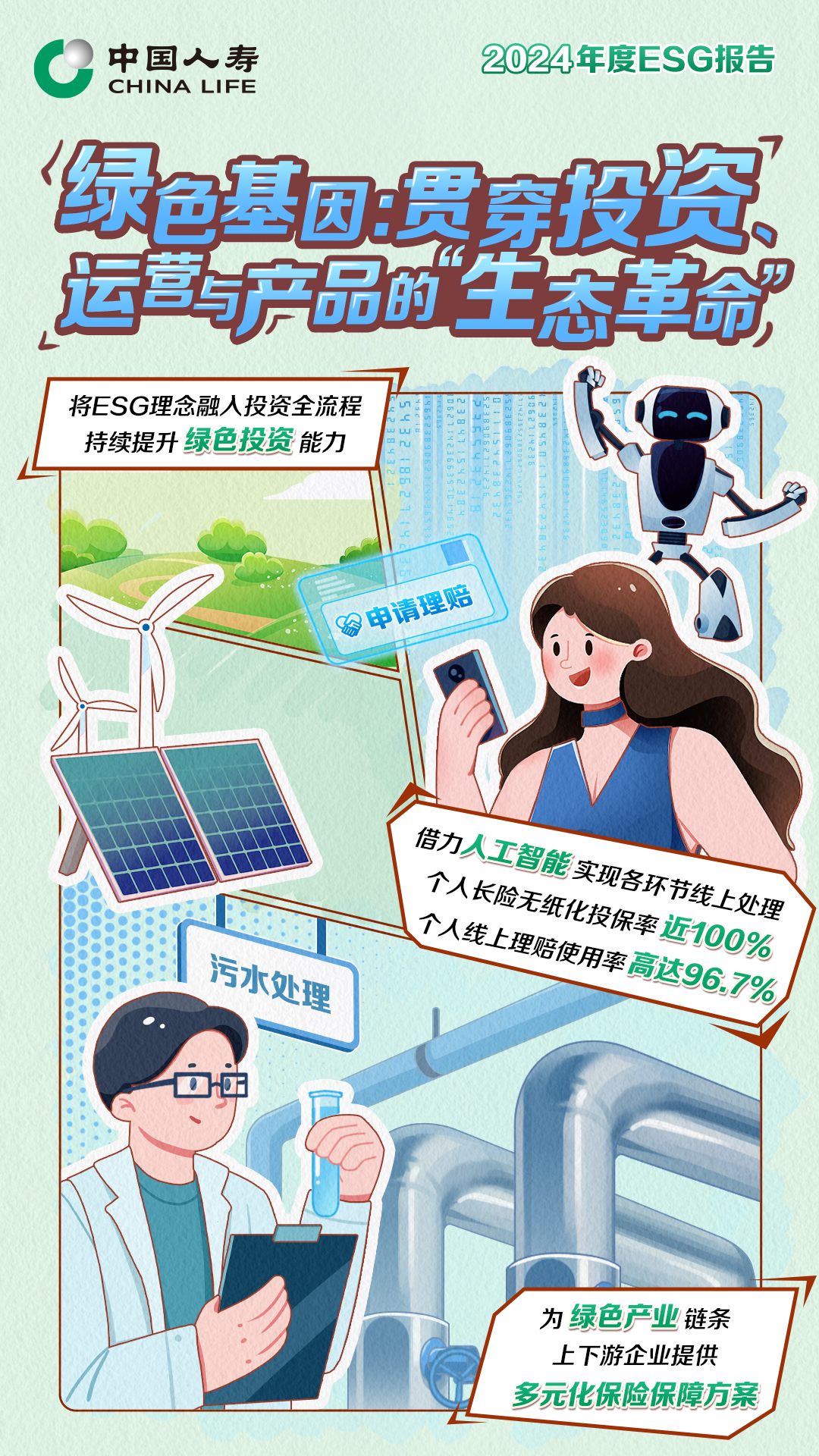 2024年,國(guó)內(nèi)壽險(xiǎn)“頭雁”——中國(guó)人壽保險(xiǎn)股份有限公司(以下簡(jiǎn)稱(chēng)“中國(guó)人壽壽險(xiǎn)公司”)以一份含金量十足的ESG成績(jī)單引發(fā)市場(chǎng)關(guān)注:明晟(MSCI)ESG評(píng)級(jí)躍升至A級(jí),持續(xù)穩(wěn)健引領(lǐng)國(guó)內(nèi)壽險(xiǎn)企業(yè);總資產(chǎn)、投資資產(chǎn)雙雙超6.6萬(wàn)億元,實(shí)現(xiàn)較快增長(zhǎng);總保費(fèi)超6714億元,內(nèi)含價(jià)值超1.4萬(wàn)億元,規(guī)模、價(jià)值繼續(xù)保持行業(yè)領(lǐng)先地位;服務(wù)實(shí)體經(jīng)濟(jì)投資規(guī)模超4.6萬(wàn)億元;鄉(xiāng)村振興千億投資精準(zhǔn)滴灌田間地頭;養(yǎng)老生態(tài)建設(shè)布局14個(gè)城市17個(gè)機(jī)構(gòu)養(yǎng)老項(xiàng)目……一組組數(shù)據(jù)不僅折射出金融央企服務(wù)國(guó)家戰(zhàn)略的使命擔(dān)當(dāng),更揭示了一個(gè)深層邏輯:當(dāng)ESG從監(jiān)管要求升維為企業(yè)核心競(jìng)爭(zhēng)要素,中國(guó)人壽壽險(xiǎn)公司正以“中國(guó)式ESG實(shí)踐”重新定義責(zé)任金融的價(jià)值尺度。