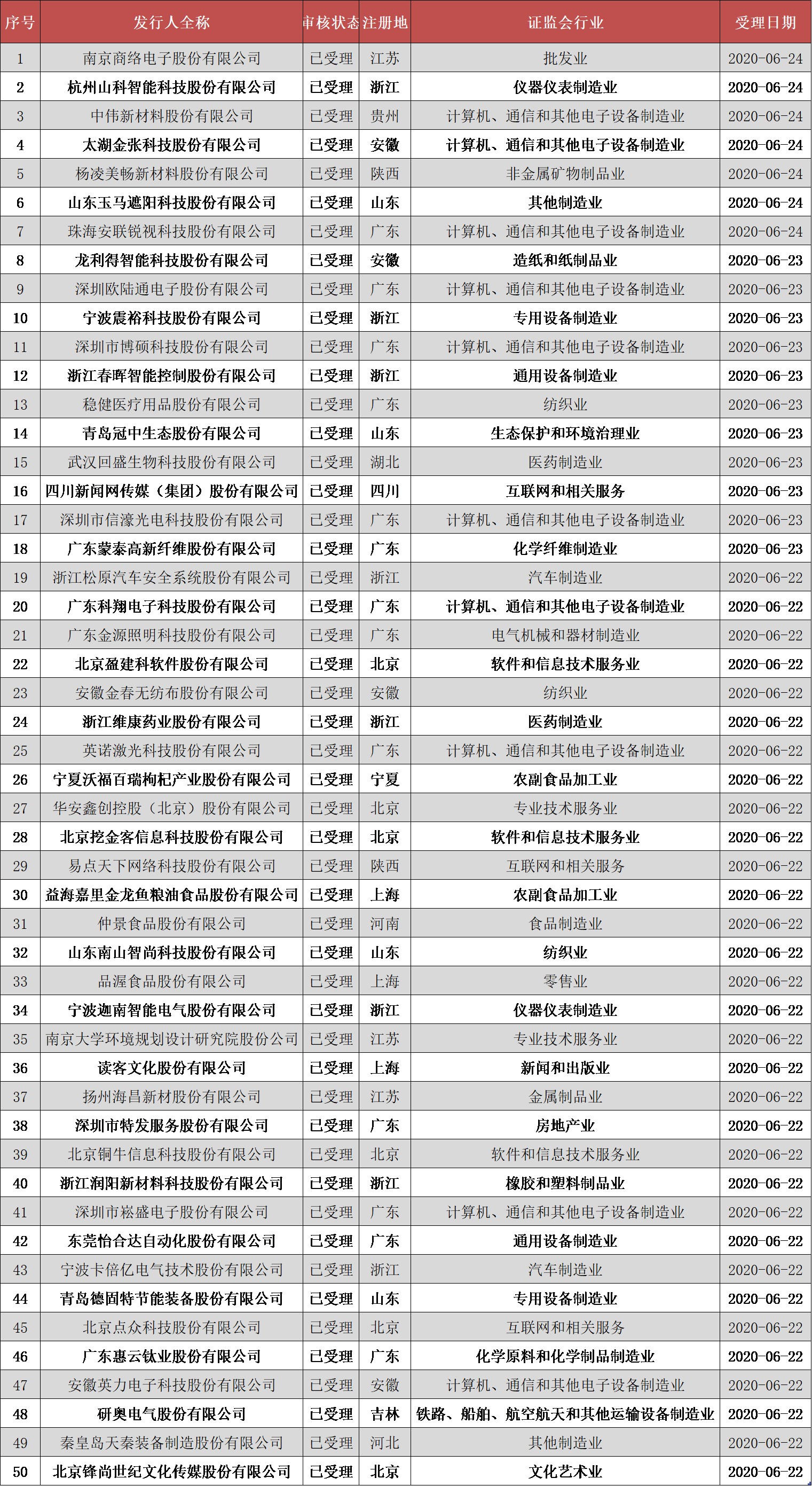 近日,創(chuàng)業(yè)板注冊制改革第三批7家受理企業(yè)名單出爐。至此,創(chuàng)業(yè)板試點注冊制受理企業(yè)已有50家。