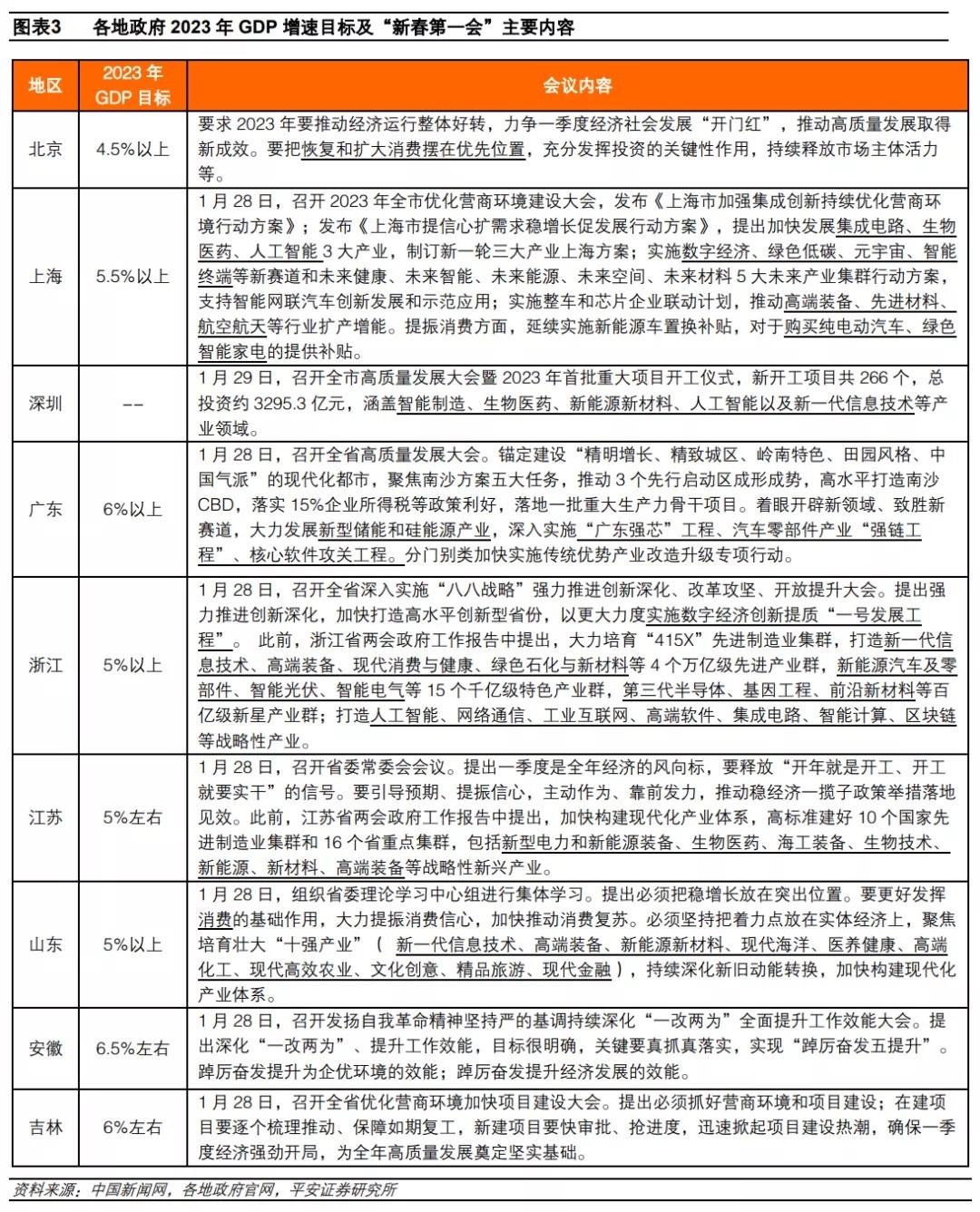 此外,平安證券關(guān)注到春節(jié)之后各地政府發(fā)展經(jīng)濟搶跑的跡象,廣東、浙江、安徽、吉林、上海等地都召開了省級層面的“新春第一會”及新一輪優(yōu)化營商環(huán)境行動方案,從部署內(nèi)容來看,高質(zhì)量發(fā)展、優(yōu)化營商環(huán)境、重點項目建設(shè)等主題是關(guān)注的重點。當結(jié)合推動高質(zhì)量發(fā)展、發(fā)展現(xiàn)代產(chǎn)業(yè)體系、統(tǒng)籌發(fā)展和安全、全面深化改革開放、大力提振市場信心、把實施擴大內(nèi)需戰(zhàn)略同深化供給側(cè)結(jié)構(gòu)性改革有機結(jié)合起來等關(guān)鍵詞看,新一輪政府發(fā)力經(jīng)濟建設(shè),不僅符合中國中長期的發(fā)展規(guī)劃,也符合疫情之后企業(yè)和個人對于美好生活的向往。而行業(yè)層面則看到了諸多政策的優(yōu)化和調(diào)整,比如房地產(chǎn)、互聯(lián)網(wǎng)、教育、醫(yī)療、游戲等。中國資本市場在此過程中將推動凝聚中長期預期,2022年提風物長宜放眼量,2023年則是長風破浪會有時,中國經(jīng)濟的韌性、中國企業(yè)的調(diào)整能力都會逐步地體現(xiàn)出來。