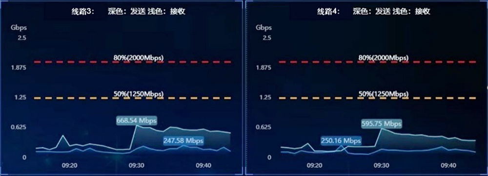 新一代骨干網(wǎng)通過(guò)SRv6和隨流檢測(cè)技術(shù),實(shí)現(xiàn)業(yè)務(wù)流量的智能調(diào)度,將骨干網(wǎng)打造成為高效負(fù)載均衡的骨干通道,徹底解決之前鏈路使用不均的問(wèn)題,現(xiàn)網(wǎng)的4條不同線路之間的瞬時(shí)峰值差異從50%下降到20%以下,鏈路帶寬得到充分利用。
