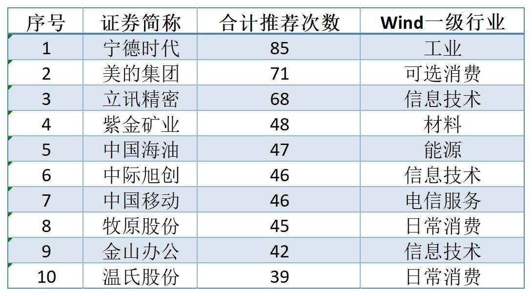 被多家券商“青睞”的金股往往受到更高的市場關注,2024年全年,被券商推薦次數(shù)合計最多的金股是寧德時代,共被推薦85次;其次是美的集團和立訊精密,分別被推薦71次和68次。從股價漲幅來看,被推薦的當月,漲幅最高的金股是常山北明,該股于2024年10月份被東方證券推薦,當月漲幅高達180.82%。