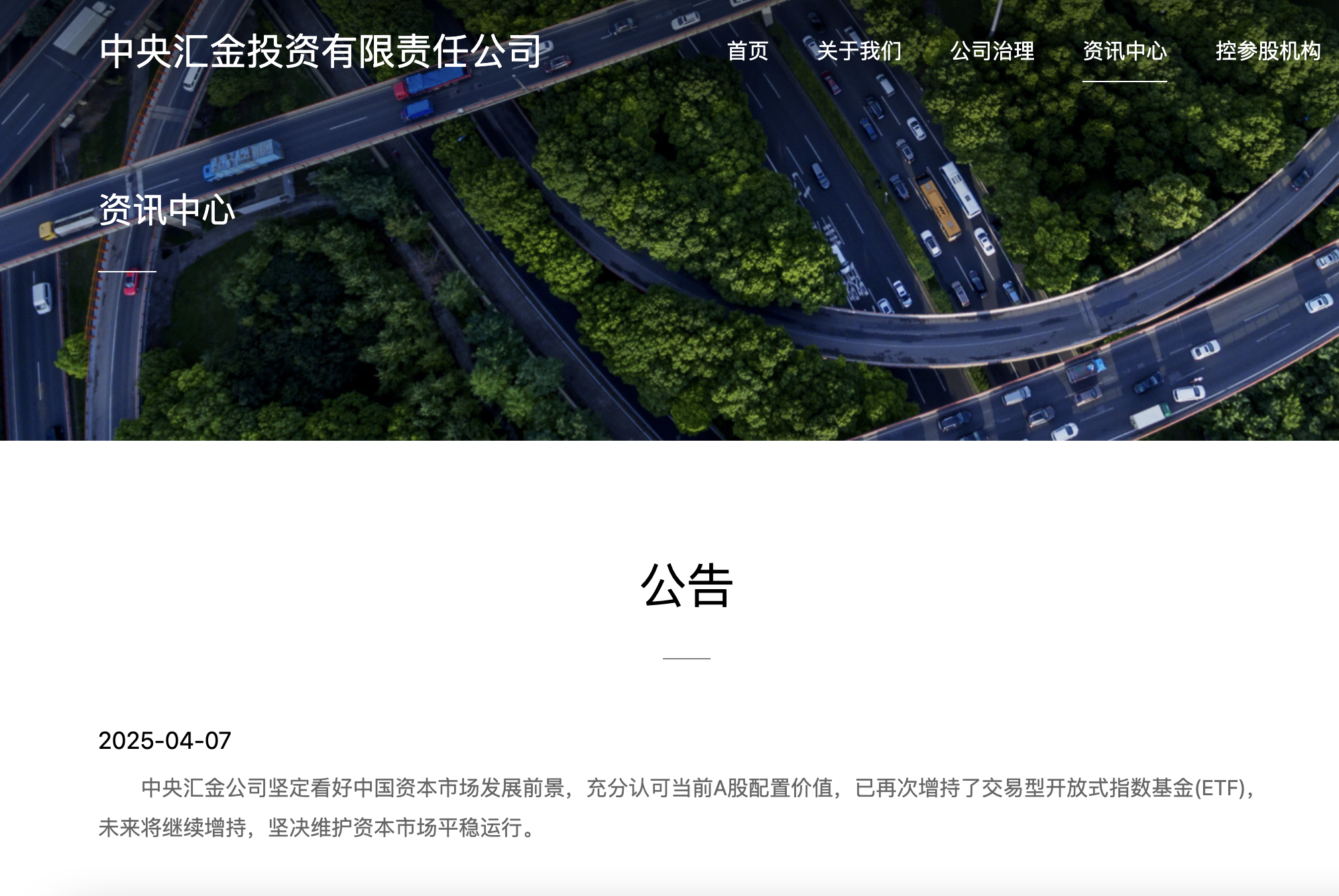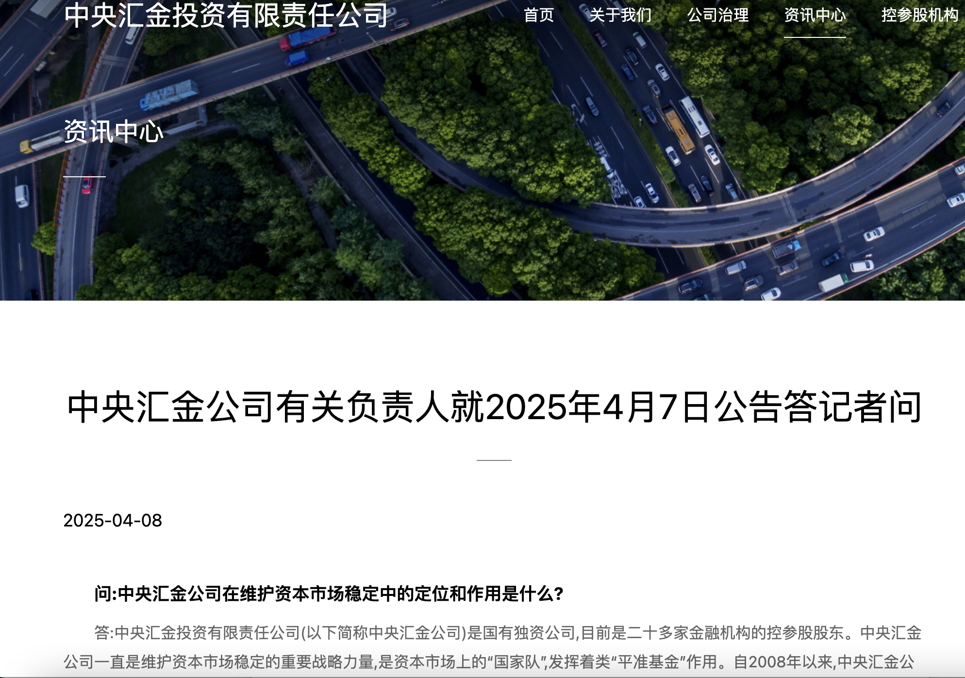 中央匯金公司有關負責人就2025年4月7日公告答記者問