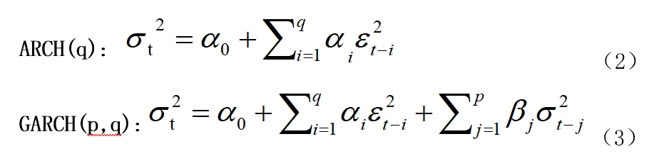 項(xiàng),能夠捕捉歷史波動(dòng)對(duì)當(dāng)前波動(dòng)的累計(jì)效應(yīng),將ARCH模型所依賴(lài)的高階殘差項(xiàng)通過(guò)歷史殘差平方的遞歸函數(shù)進(jìn)行替代,更為符合金融數(shù)據(jù)波動(dòng)的持續(xù)性特征。