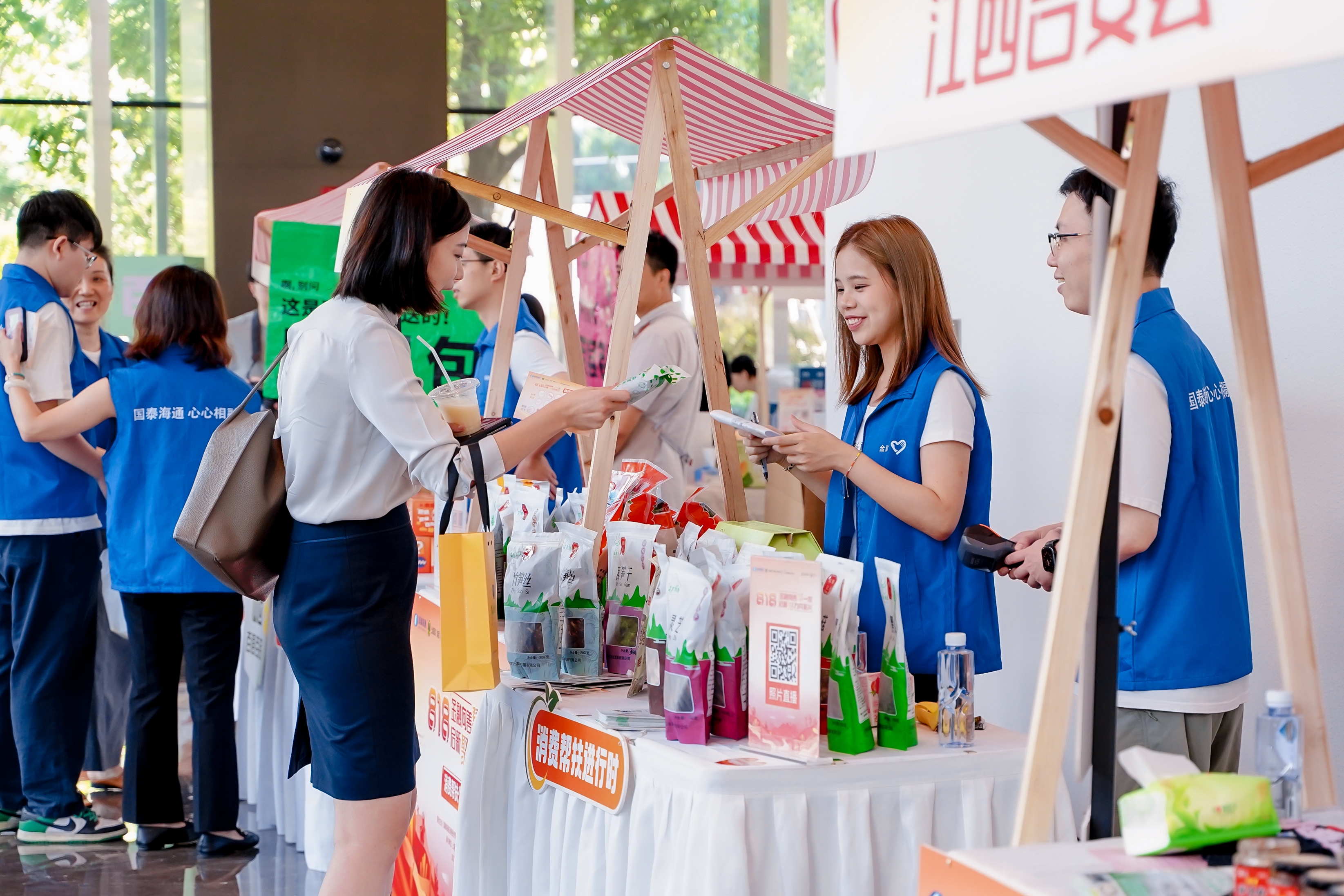 為進(jìn)一步做好“一司一縣”結(jié)對幫扶、“百企結(jié)百村”工作,強(qiáng)化幫扶實(shí)效,助力鄉(xiāng)村全面振興,8月18日,國泰海通攜手戰(zhàn)略客戶光明集團(tuán)下屬上海蔬菜集團(tuán)(上海市消費(fèi)幫扶工作平臺)舉辦首屆“818·幫一幫”公益文化節(jié)暨消費(fèi)幫扶公益集市。公司黨委書記、董事長朱健,黨委副書記、工會主席吳紅偉出席活動,上海市慈善基金會、上海市合作交流辦、上海市國資委、上海市民政局和來自安徽利辛、安徽潛山、安徽舒城、江西吉安、江西寧都、四川普格、新疆葉城、云南廣南、云南麻栗坡、云南西疇10個結(jié)對幫扶縣相關(guān)領(lǐng)導(dǎo),以及上海證券交易所、浙江大學(xué)、東方航空、浦發(fā)銀行等公益伙伴代表參加活動,公司各部門、子公司相關(guān)負(fù)責(zé)人和志愿者等130余人參加主會場活動,線上線下600余名員工參加公益集市活動。
