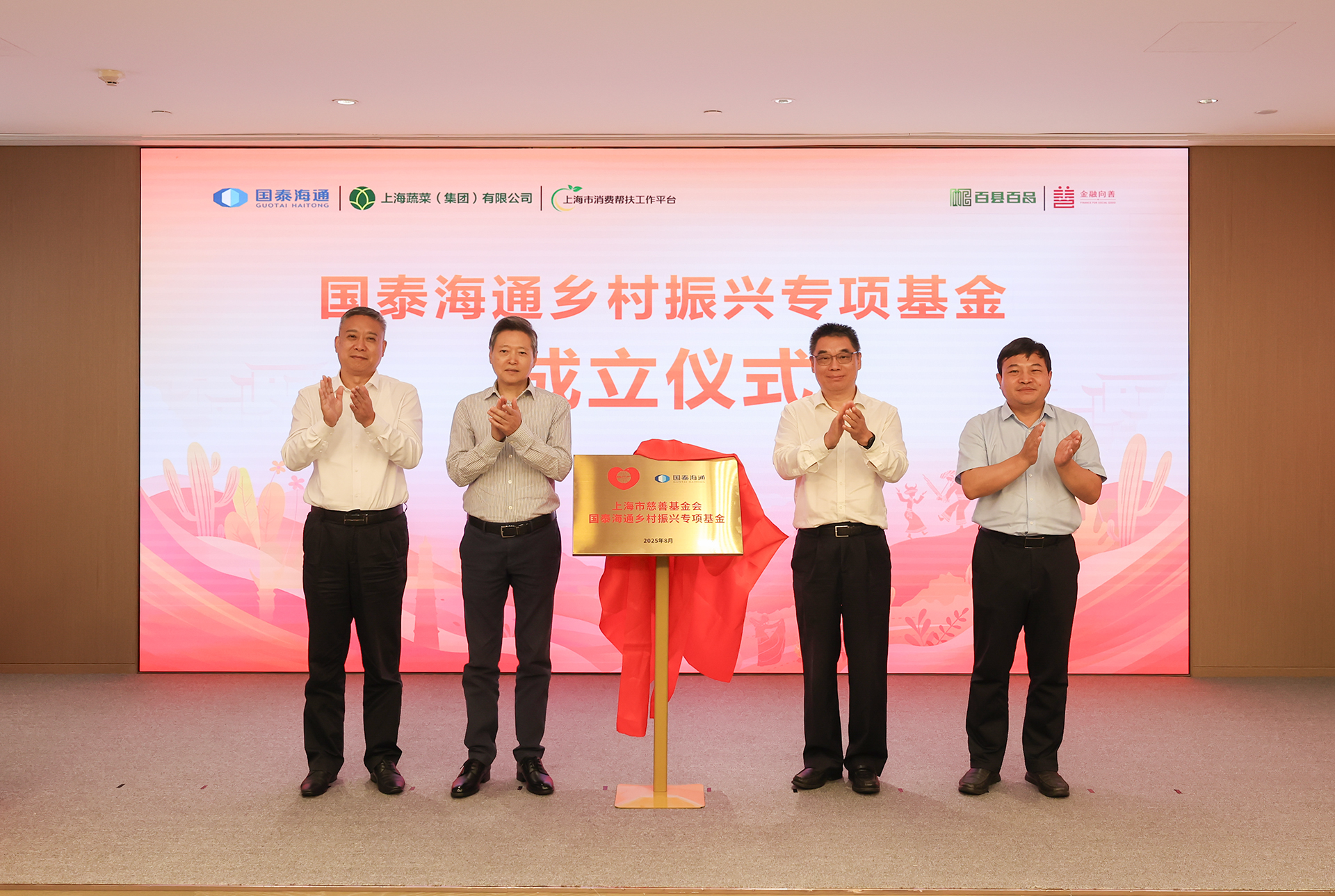 為了進(jìn)一步做好產(chǎn)業(yè)幫扶,公司在上海市慈善基金會設(shè)立“國泰海通鄉(xiāng)村振興專項基金”,首期規(guī)模1000萬元。上海市慈善基金會副理事長丁斐平和吳紅偉共同為“國泰海通鄉(xiāng)村振興專項基金”揭牌,為結(jié)對縣發(fā)展有潛力的特色產(chǎn)業(yè)提供助力、注入動能。