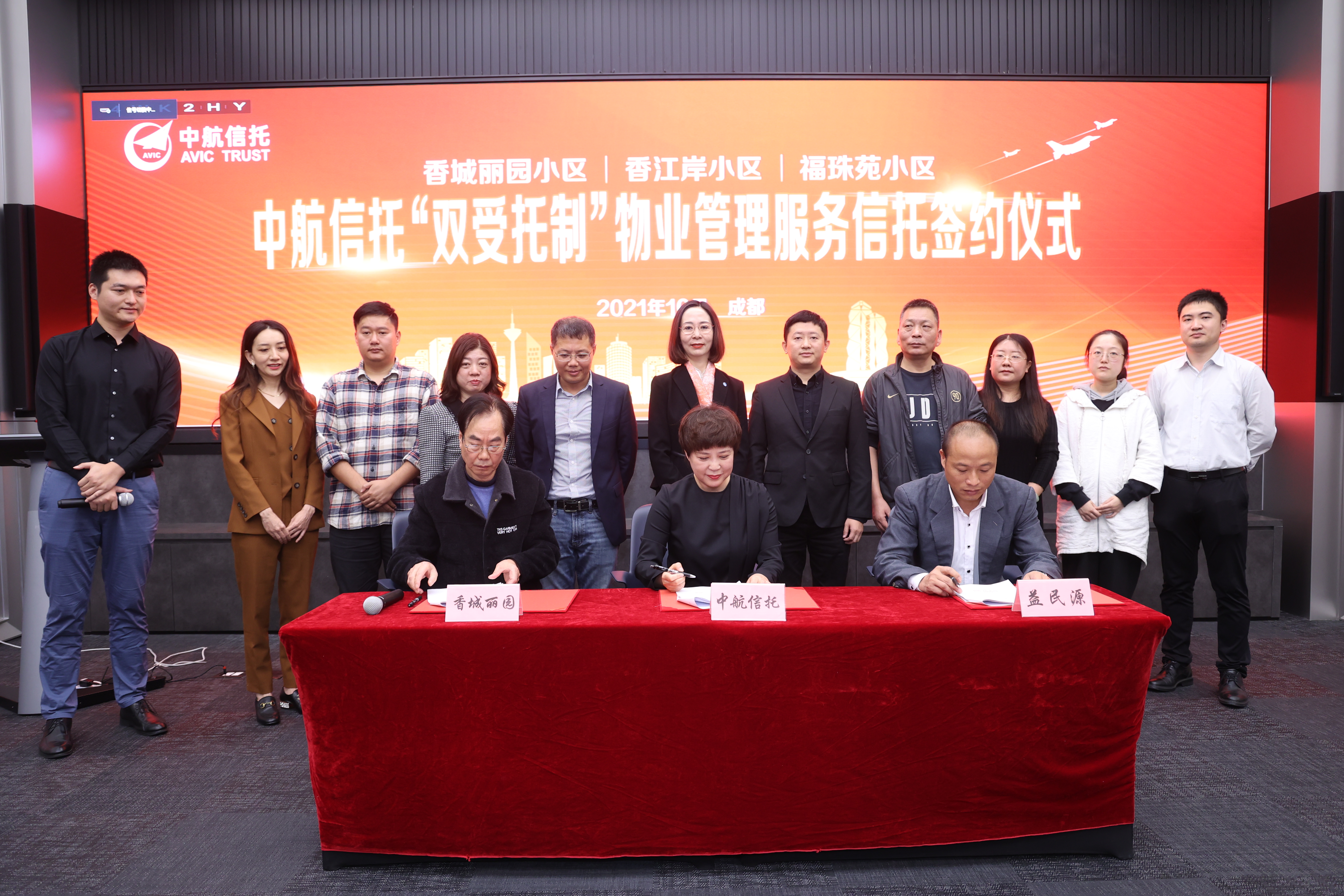 10月13日,中航信托與成都市香城麗園小區(qū)、香江岸小區(qū)、福珠苑小區(qū)業(yè)委會(huì)以及成都益民源、成都誠智物業(yè)、成都智樂物業(yè)簽訂合同,正式落地物業(yè)管理服務(wù)信托。