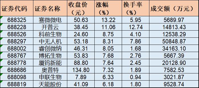 表:10月31日上午漲幅居前10的科創(chuàng)板做市標(biāo)的股一覽