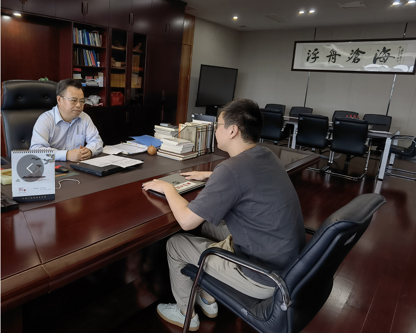 圖為:公司董事長蔣學(xué)鑫接受本報(bào)記者專訪