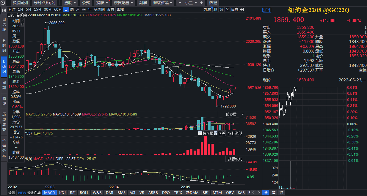 東證期貨外匯和貴金屬資深分析師徐穎告訴《證券日?qǐng)?bào)》記者:“從交易層面來看,國(guó)際金價(jià)基本在1800美元/盎司附近見底。在美國(guó)多項(xiàng)經(jīng)濟(jì)數(shù)據(jù)邊際走弱,以及美股財(cái)報(bào)表現(xiàn)不及預(yù)期等多方面因素共同作用下,市場(chǎng)對(duì)美國(guó)經(jīng)濟(jì)陷入衰退的預(yù)期有所升溫,黃金交易開始出現(xiàn)轉(zhuǎn)向,強(qiáng)勢(shì)美元和美債收益率回落,黃金觸底反彈,中長(zhǎng)期看漲。”