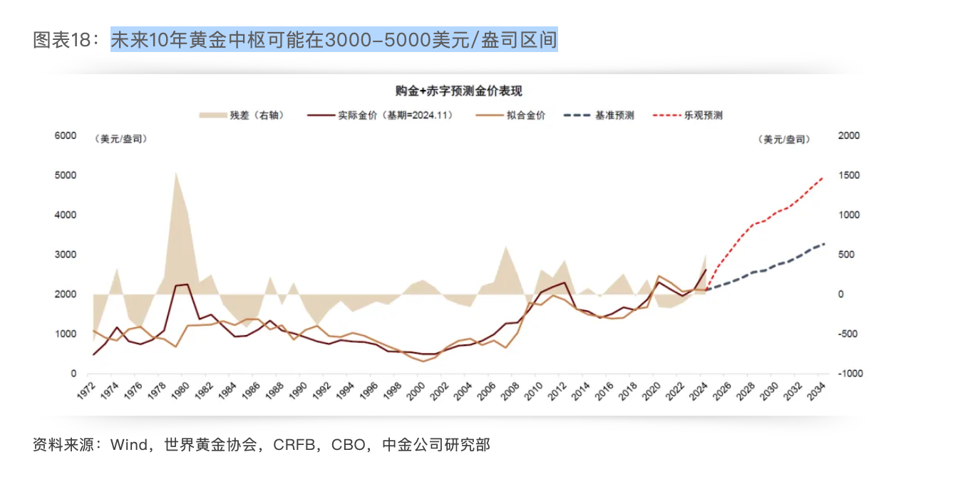 不過(guò)長(zhǎng)期來(lái)看,業(yè)內(nèi)人士仍看好金價(jià)走勢(shì),并認(rèn)為金價(jià)或?qū)⒊掷m(xù)維持高位。中金公司研究部更是預(yù)測(cè),未來(lái)10年黃金中樞可能在3000美元/盎司至5000美元/盎司區(qū)間。