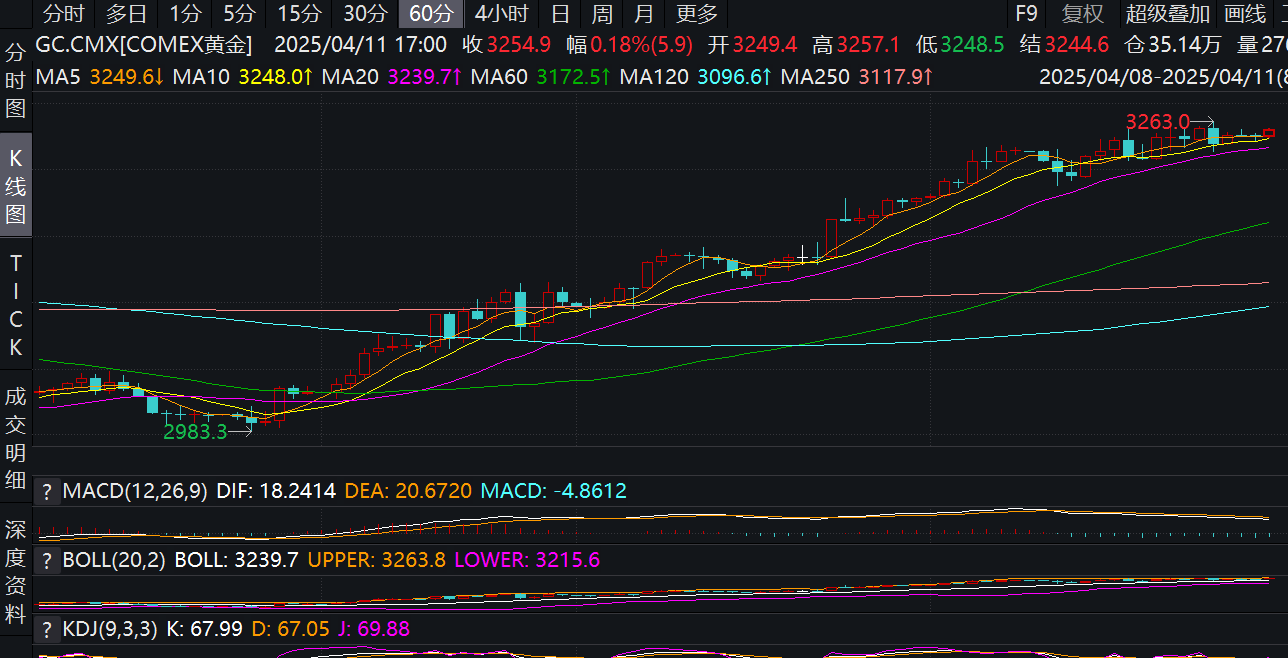 北京時間4月13日,紐約商業(yè)交易所(COMEX)黃金期貨再度創(chuàng)出歷史新高,主力6月合約盤中最高點達3263美元/盎司。截至記者發(fā)稿,該合約報收于3255美元/盎司。