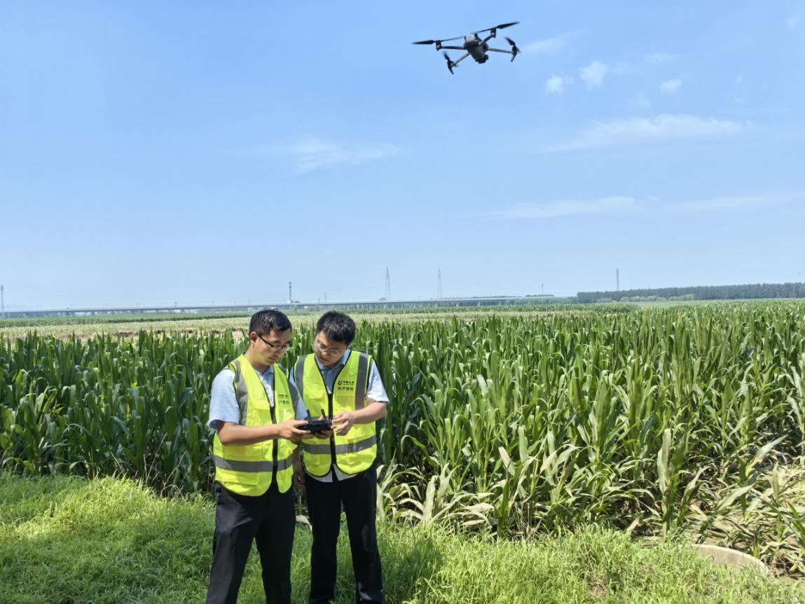 中國人壽財(cái)險(xiǎn)泰安市中心支公司理賠員工利用無人機(jī)航拍、遙感監(jiān)測等技術(shù)手段,對(duì)受災(zāi)玉米實(shí)地查勘。高永文/攝影