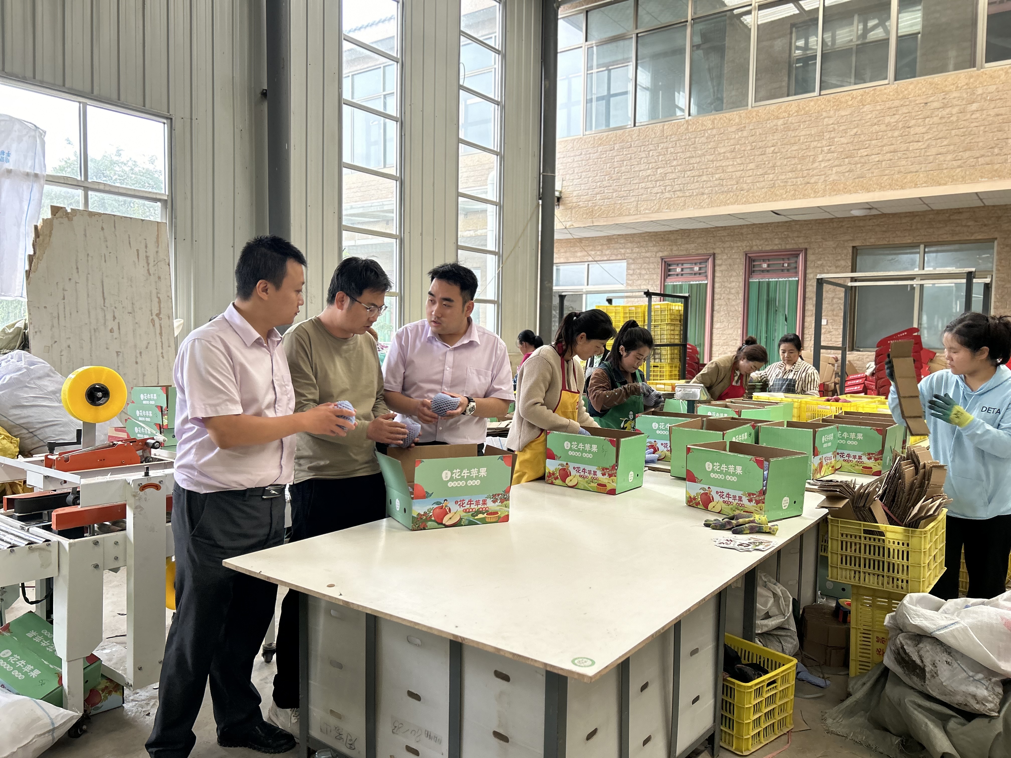 農(nóng)行天水分行客戶經(jīng)理在花牛蘋果基地查看蘋果加工包裝情況農(nóng)行天水分行供圖