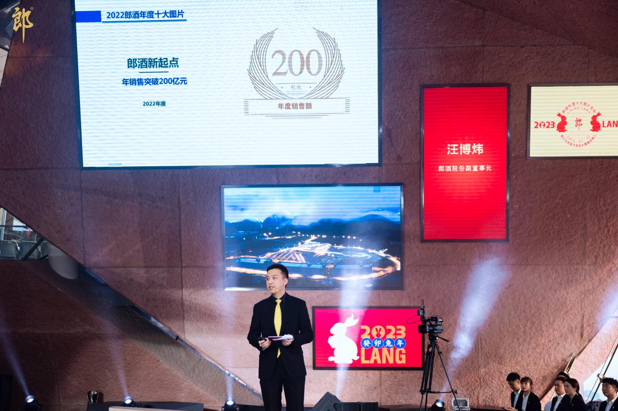 郎酒股份副董事長汪博煒在現(xiàn)場發(fā)布了2022郎酒年度十大圖片,與大家一起回顧《郎酒醬香產(chǎn)品企業(yè)內(nèi)控準則》發(fā)布、第二屆郎酒莊園三品節(jié)、青花郎大好河山攝影大賽、郎酒發(fā)布“五大價值體系”、6萬噸醬酒產(chǎn)能18萬噸醬酒儲量、郎牌郎回歸、經(jīng)銷商2020年至2022年特別獎勵10億元、生肖館地之閣開館、紅花郎勢能回歸、年銷售突破200億元的十個精彩瞬間。