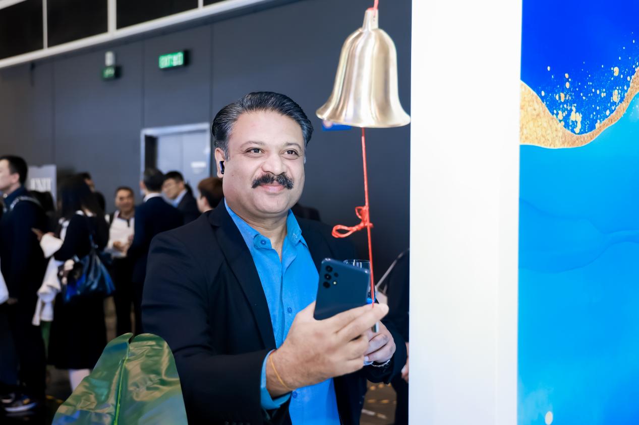 展廳內(nèi)一處別致的鈴鐺體驗區(qū)尤為引人注目——嘉賓輕搖鈴鐺,即可開啟專屬綿柔品鑒之旅,這一巧妙設(shè)計將品酒的儀式感與趣味性完美結(jié)合,吸引了眾多海內(nèi)外嘉賓駐足流連。
