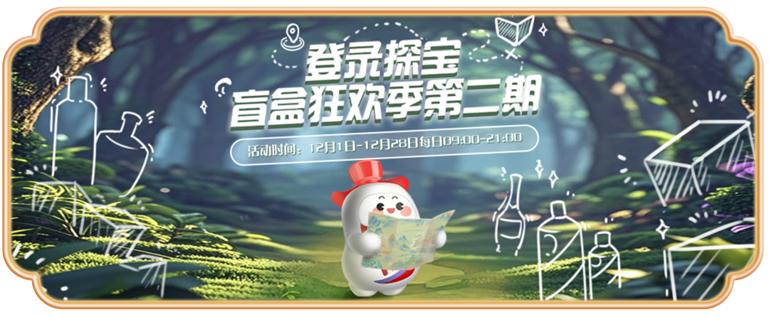 12月1日-12月28日每日09:00-21:00,親們登錄i茅臺(tái)App進(jìn)入“登錄探寶 盲盒狂歡季”活動(dòng)頁面,點(diǎn)擊“鑿開石塊”參與每日簽到抽獎(jiǎng)活動(dòng),連續(xù)7天、28天參與活動(dòng)還能獲額外抽獎(jiǎng)機(jī)會(huì)。有機(jī)會(huì)抽取:飛天53%vol1L貴州茅臺(tái)酒、53%vol500ml貴州茅臺(tái)酒(乙巳蛇年)、茅臺(tái)醬香系列酒、文創(chuàng)周邊等精選好禮。