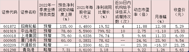 表:已披露2022年一季度業(yè)績預(yù)告且預(yù)喜的港口航運公司