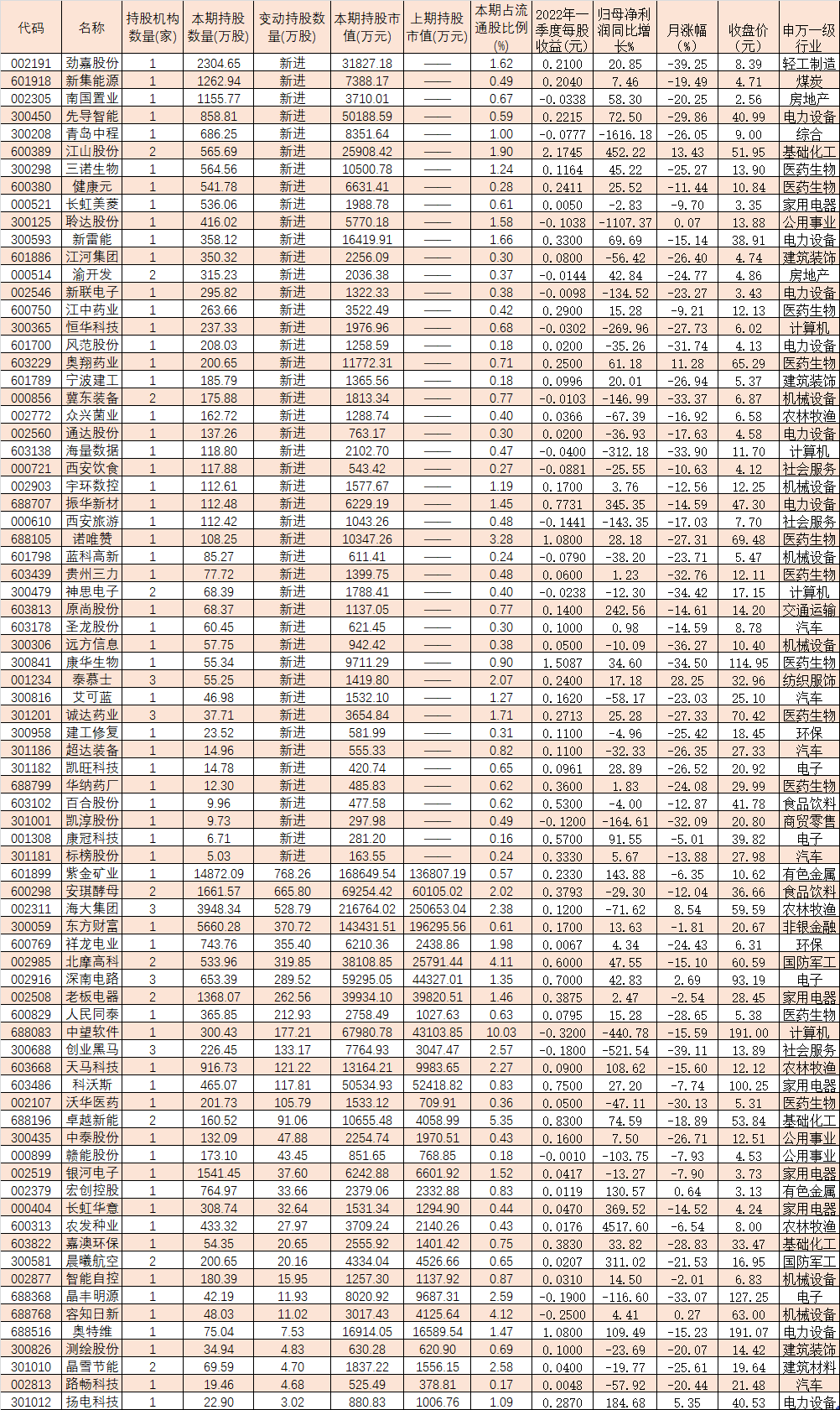 從持倉來看,有43只個股2022年一季度末QFII持倉市值超過1億元。南京銀行、海大集團、萬通發(fā)展、紫金礦業(yè)、東方財富等5只個股一季度末QFII持倉市值均超10億元。