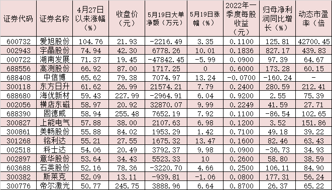表:4月27日以來累計漲幅超過50%的光伏概念股