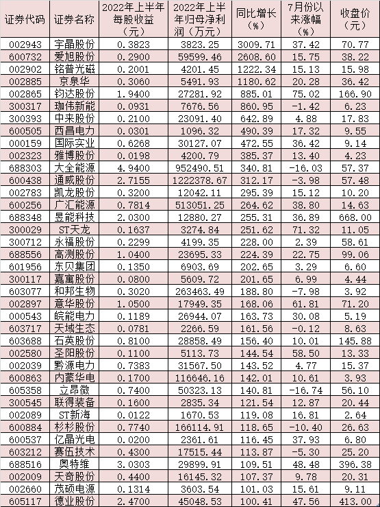 表:今年上半年歸母凈利潤(rùn)同比增長(zhǎng)超100%的光伏公司