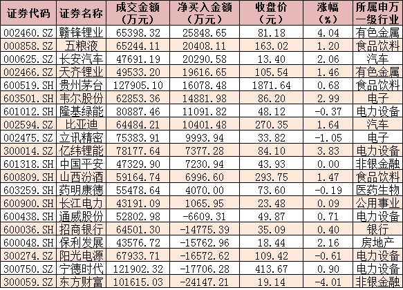 值得關(guān)注的是,今日北向資金凈買(mǎi)入金額達(dá)16.03億元。其中,滬港通凈買(mǎi)入金額達(dá)6.70億元,深股通凈買(mǎi)入金額達(dá)9.32億元。從前十大成交活躍股來(lái)看,今日,贛鋒鋰業(yè)、五糧液、長(zhǎng)安汽車(chē)等3只個(gè)股,北向資金凈買(mǎi)入金額均超2億元。