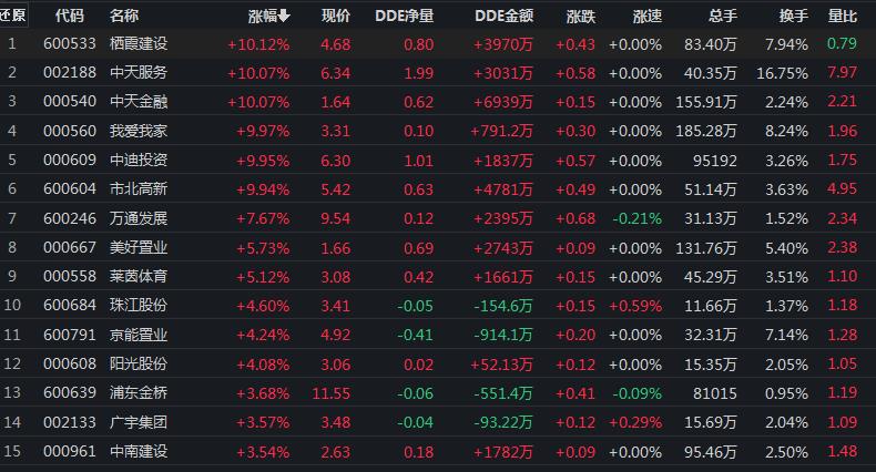 9月21日,房地產(chǎn)行業(yè)漲幅居首達(dá)1.41%。其中,市北高新、我愛我家、中天服務(wù)、棲霞建設(shè)、中天金融、中迪投資等6只個股集體漲停。