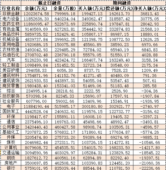 表:9月21日申萬一級行業(yè)兩融交易情況: